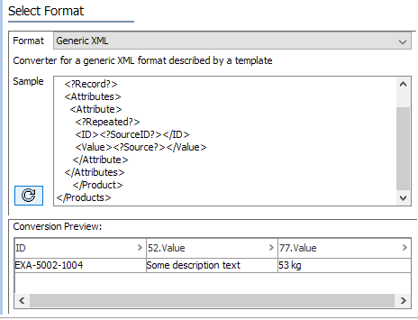 3. Enter or paste the template below in the Import Manager, and generate a conversion preview by clicking the refresh button, .