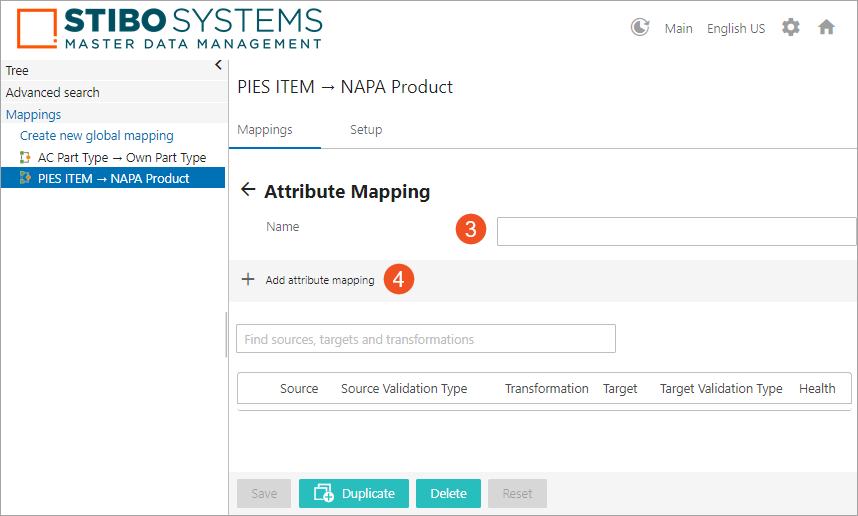 - If transformations are needed, users can either use an existing attribute transformation in the system or create a new one by clicking the 'Create new transformation' icon (