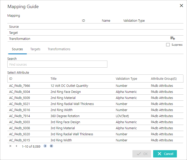 - Click the ‘Add attribute mapping’ icon, and the Mapping Guide window will display (as shown below).