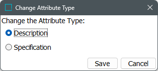 Note: When you are changing from a description type attribute to a specification type attribute, ensure that you link this attribute to the respective hierarchy. For more information, refer to the Linking Specification Attributes topic.