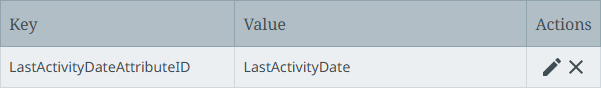 In the Self-Service UI, select your environment, and on the 'Configuration properties' tab set the LastActivityDateAttributeID key and specify the ID of the description attribute created as the Value.