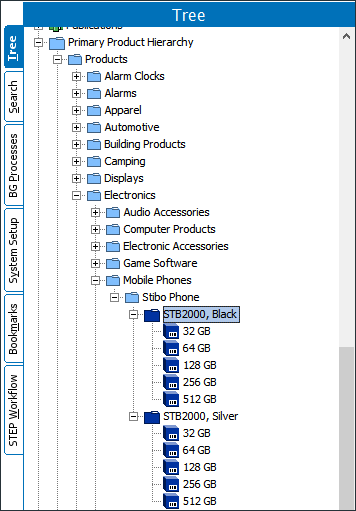 In the data model below the phone 'STB2000' has a black and silver model as well as a variant for each size.