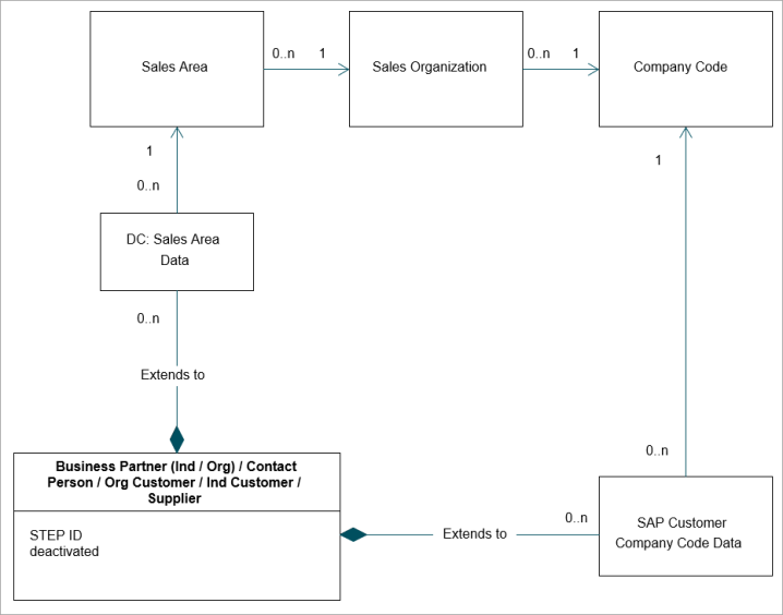 A BP may only have Sales Area Data if the corresponding Company Code Data is present such that the Sales Area must be associated to a Sales Organization that is associated to a Company Code for which the BP has Company Code Data.