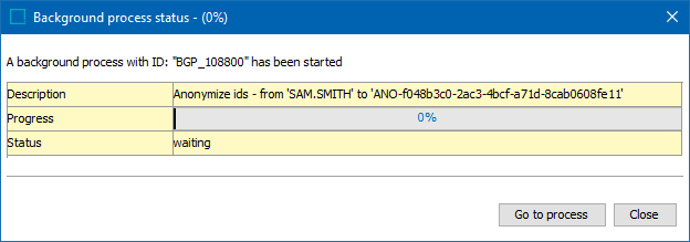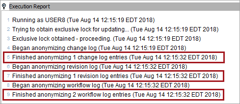 A background process begins, and an Execution Report shows when the anonymization is complete.