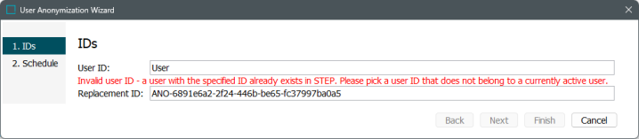 Enter the STEP ID of the deleted user to be anonymized and click Next. The ID is not case sensitive.
