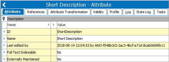 - [Object] Change Log (in this example, it is the change log for the 'Short Description' attribute)