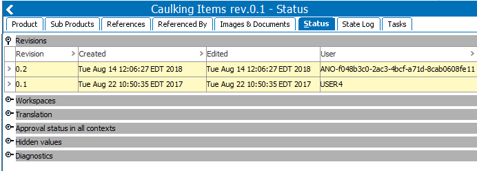 While the examples in this topic are all showing the User Anonymizer end results in the workbench, the anonymization is visible in Web UI, where configured and applicable (as a starting point, refer to the Web User Interfaces documentation). For example, revision information on the Multi Revision screen: