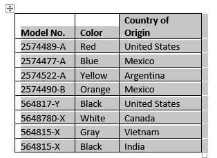 The same steps are used as those for creating the table from Excel, except the table is copied and pasted from a Word document.