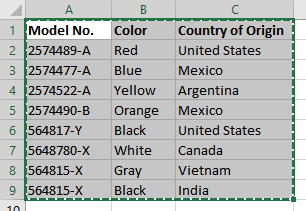 - On your spreadsheet, highlight and copy the cells from which you would like to create the table.