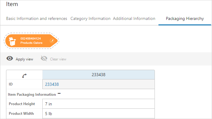 When the Packaging Hierarchy Editor has been configured to display in Web UI, it is possible to view and edit packaging hierarchies. When set up and used correctly, the Packaging Hierarchy Editor looks similar to the following screenshot: