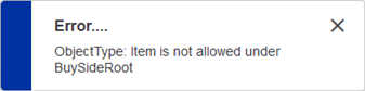 In this example, using the 'Add higher level' feature, a 'Pallet' object is added. Similarly, a 'Case' or 'Pack' object can be added using the 'Add lower level' feature. To insert between the 'Pallet' and 'Pack' objects, use the 'Add between level' feature to add a 'Case' object. Attempting to add an object without validity results in the following error: