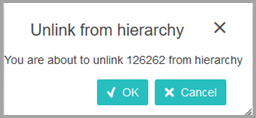 Removing objects is possible via the 'Unlink' feature. This includes conformation before unlinking with an 'Unlink from hierarchy' dialog. Click OK to unlink, or Cancel to leave the hierarchy unchanged.