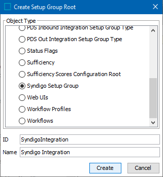 The Create Object Type dialog closes and the newly created group type for the Syndigo integrations will display beneath the Setup Group type root.