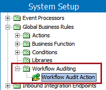 Note: If a business action with the ID 'AuditMessaging.WorkflowAuditAction' already exists on your system, the action will not be moved to the 'Workflow Auditing' subfolder upon installation of the Audit Message Framework. The action will be kept where it is.