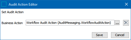 ) to select the desired audit message business action. In this example, the out-of-the-box 'Workflow Audit Action' business action is shown.
