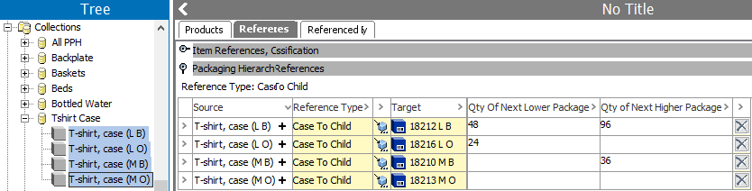 Consider the following values for the attributes 'Qty of Next Lower Package' and 'Qty of Next Higher Package' on the Case to Child reference.