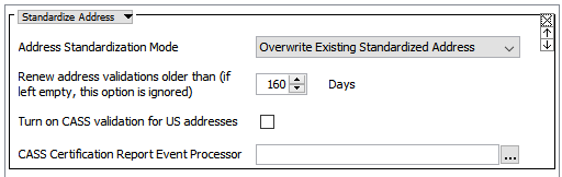 This operation allows for different standardization actions to be taken on addresses by using the Loqate solution. If applicable, CASS (Coding Accuracy Support System) operations can also be performed to apply a stricter level of address validation to US-based addresses.