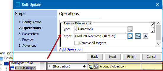- Checked with a blank Target parameter means all references of the specified type are removed from the modified objects.