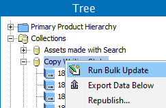 - Run on all objects in a single collection or multiple collections: In Tree, select one or more collections, right-click and choose Run Bulk Update.