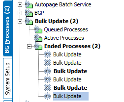 When a user completes the Bulk Update wizard, the Background process status dialog displays. This allows a user to monitor the status of the bulk update that was created.