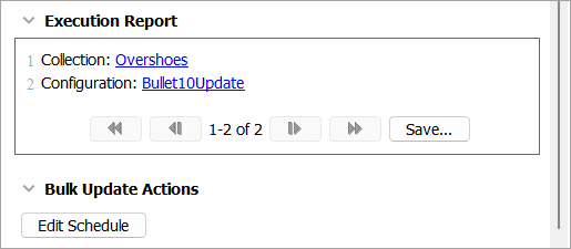 The Bulk Update Actions section allows users to make an adjustment to the scheduled bulk update. Click the 'Edit Schedule' button to reopen the 'Schedule Bulk Update' wizard on the 'Schedule Process' step. Users can then amend the schedule as needed, and the changes will be applied to the bulk update.