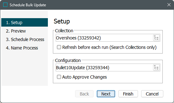 For information on how to schedule bulk updates for collections in Web UI, refer to the Scheduling a Collection Refresh in Web UI topic.