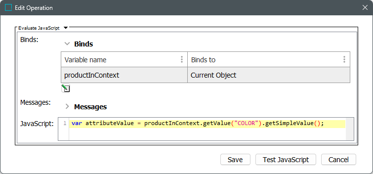 On the Edit Operation dialog (shown in the previous section), click the Test JavaScript button.