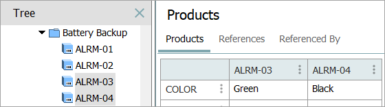 The ALRM-04 product has the value of 'Black' and the business rule result is False.