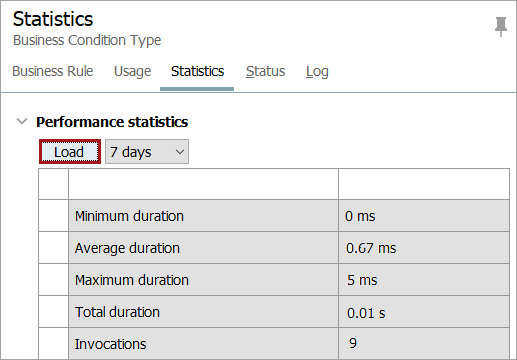 This tab shows statistics about how many times a business rule has been invoked and how it performed in the given period.