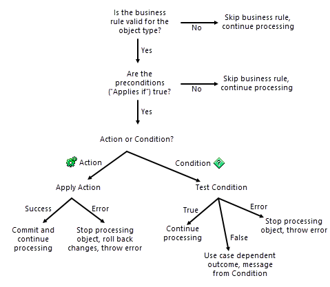 The following chart shows the decisions that determine when and if a business rule runs.