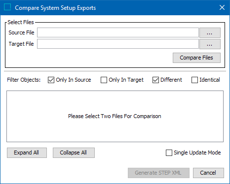 Before a user can use the comparison tool the STEP export manager needs to be used to export STEPXML from the source and target systems.