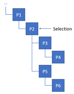 For instance, with the example product hierarchy shown below, if P2 is selected for export and the export size ‘Minimum’ is used for products with the default output template, the exported file will contain data for P2, P3, P4, P5, and P6.