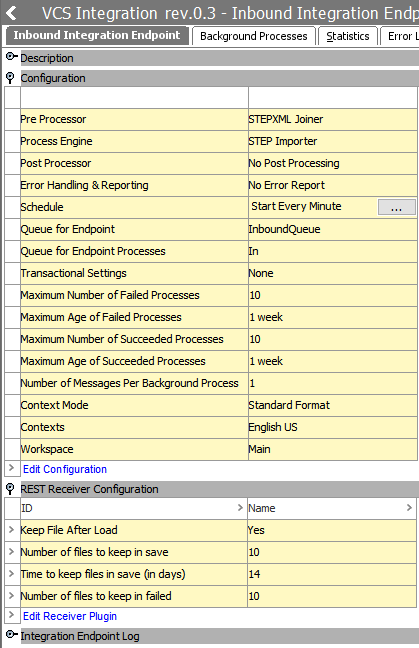The endpoint must be configured to import STEPXML (by providing any valid STEPXML file as a sample file) and can be configured with any receiver method capable of handling .ZIP files, for example, the 'Hotfolder Receiver' or the 'REST Receiver'. If workspace revisable objects like products and classifications are imported, set if import changes should be automatically approved.