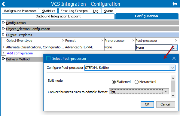For the Change Package Git Delivery method, the STEPXML Splitter is integrated into the delivery method, so the STEPXML Splitter post-processor must not be added to the OIEP.