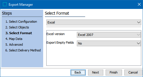 The following parameters are available when choosing the format 'Excel' in the Export Manager: