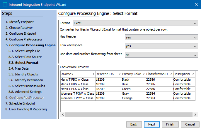 This format requires creating a data map between STEP and the data being processed, and may also include data transformations. For details, refer to Data Mapping.
