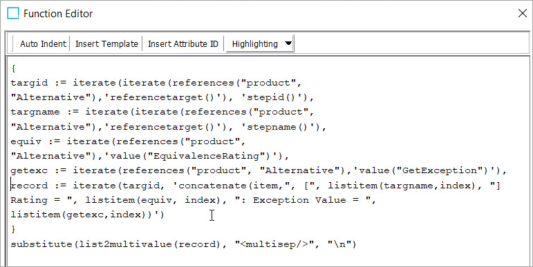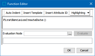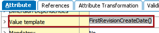 While in the attribute editor, on the 'Value template' parameter, select and copy the Value column text. In this example, select FirstRevisionCreateDate().
