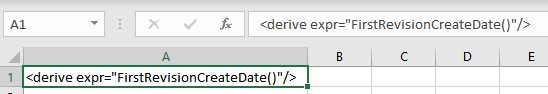 Important: If the pasted text includes an extra set of double quotes surrounding the entire value template, they must be removed for successful import. For example, with this pasted text, the first and last characters must be removed: "<derive expr="FirstRevisionCreateDate()"/>"