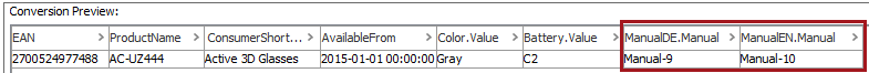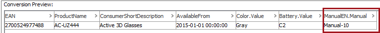 To filter repeated elements so that only elements with specific identifiers are considered, add the identifier to the "[?Repeated?]" instruction. To get only 'ManualEN' data,