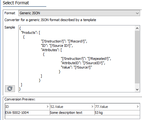 - Enter or paste the template below in the Import Manager, and generate a conversion preview by clicking the refresh button,