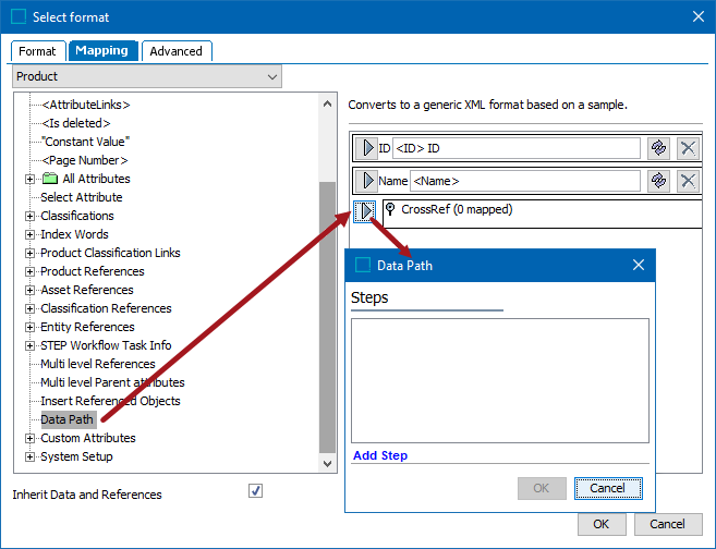 - Click OK to close the Select step type and Data Path dialogs.