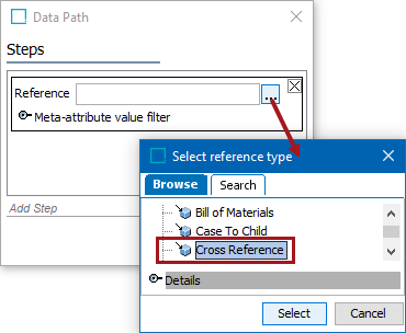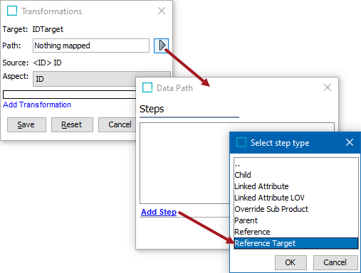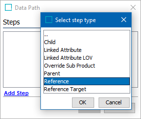 - Click the Path button, click the Add Step link, and select Reference Target.