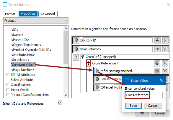 - Open the 'CrossReference'/ section, map Constant Value to refID, add the text, and click the Save button.