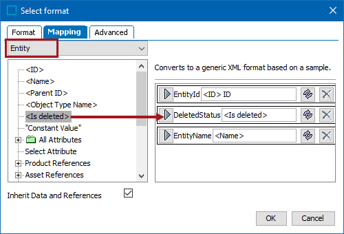 For deleted Entities, the Deleted Status displays "IsDeleted". Only ID is retained for export on Delete events.