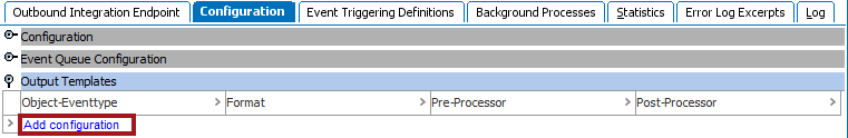 On the OIEP, open the Configuration tab. Under the Output Templates section, click the Add configuration link.