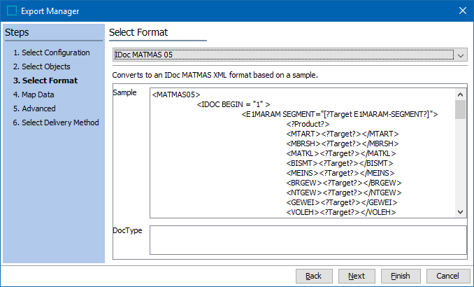 The IDoc MATMAS 05 format is XML-based and is used when exchanging information with SAP. For more information, search the web.