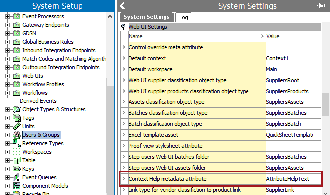 To configure the metadata attribute, navigate to System Setup > User & Groups > Web UI Settings > Context Help Metadata attribute and enter the name of the metadata attribute.