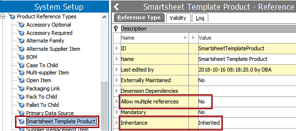 The Smartsheet Template Product reference type is automatically configured as follows: