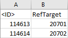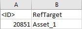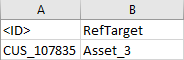 - The inbound file must contain the ID or key (not the name) of the target object for the reference (asset).