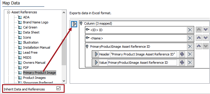 - On the Map Data step, in the left panel, expand Asset References, and select the desired asset reference type.